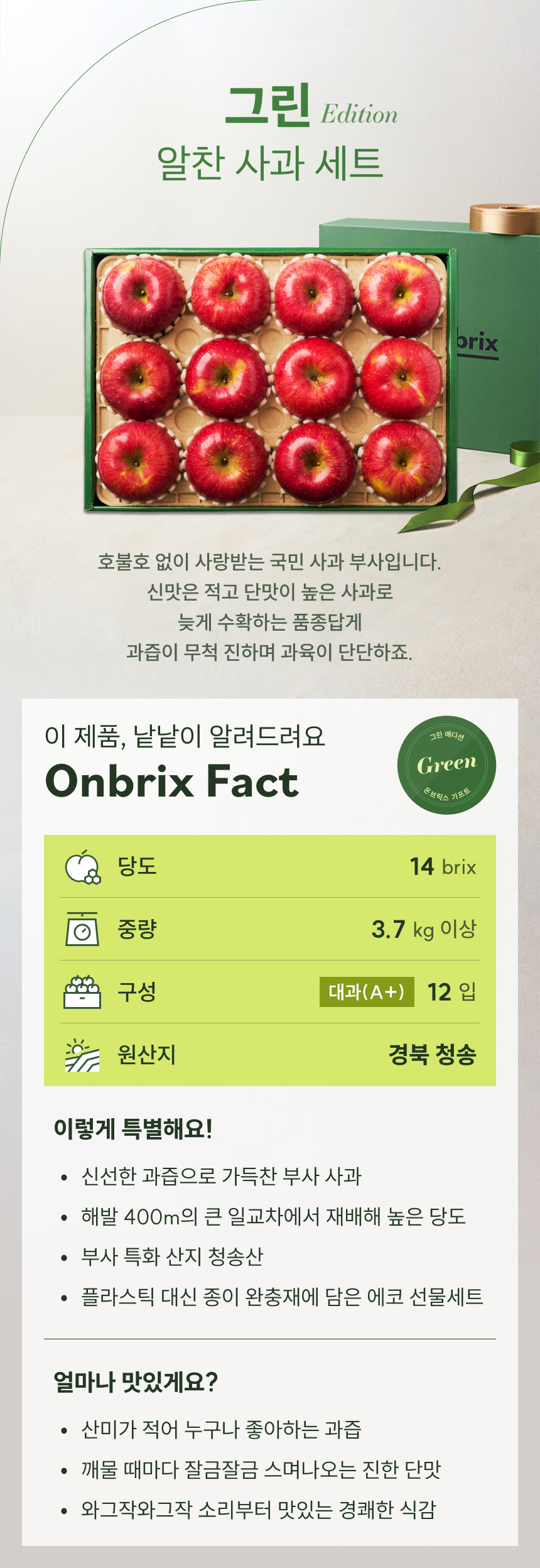 [산지직송] 그린 에디션, 알찬 사과 선물세트 3.7kg이상(12입/특품)