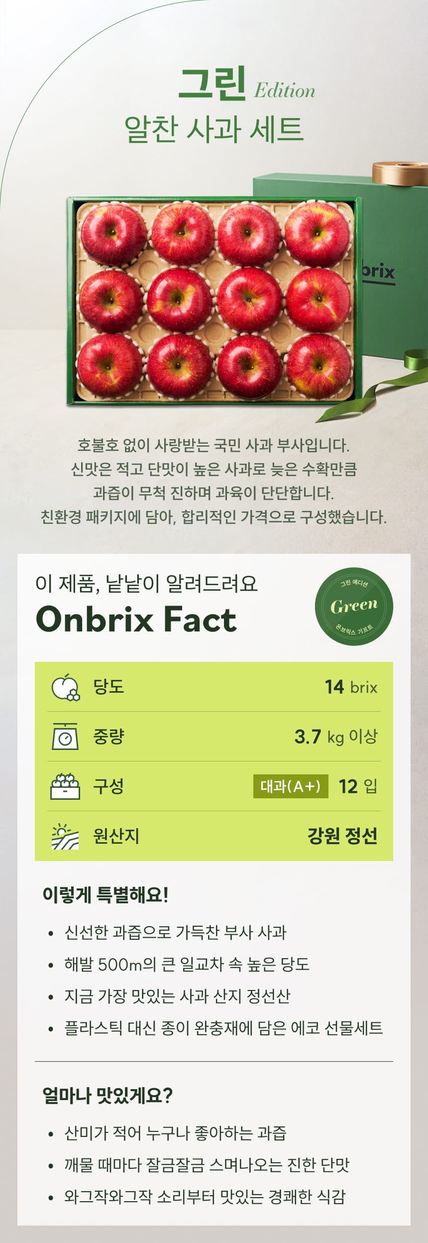 037 [설 선물] 그린 에디션, 알찬 사과 선물세트 3.7kg이상(12입/특품)