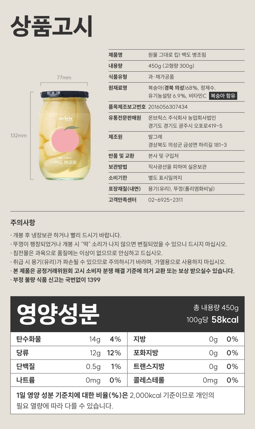 상품명 | 복숭아 병조림·잼 선물세트 |