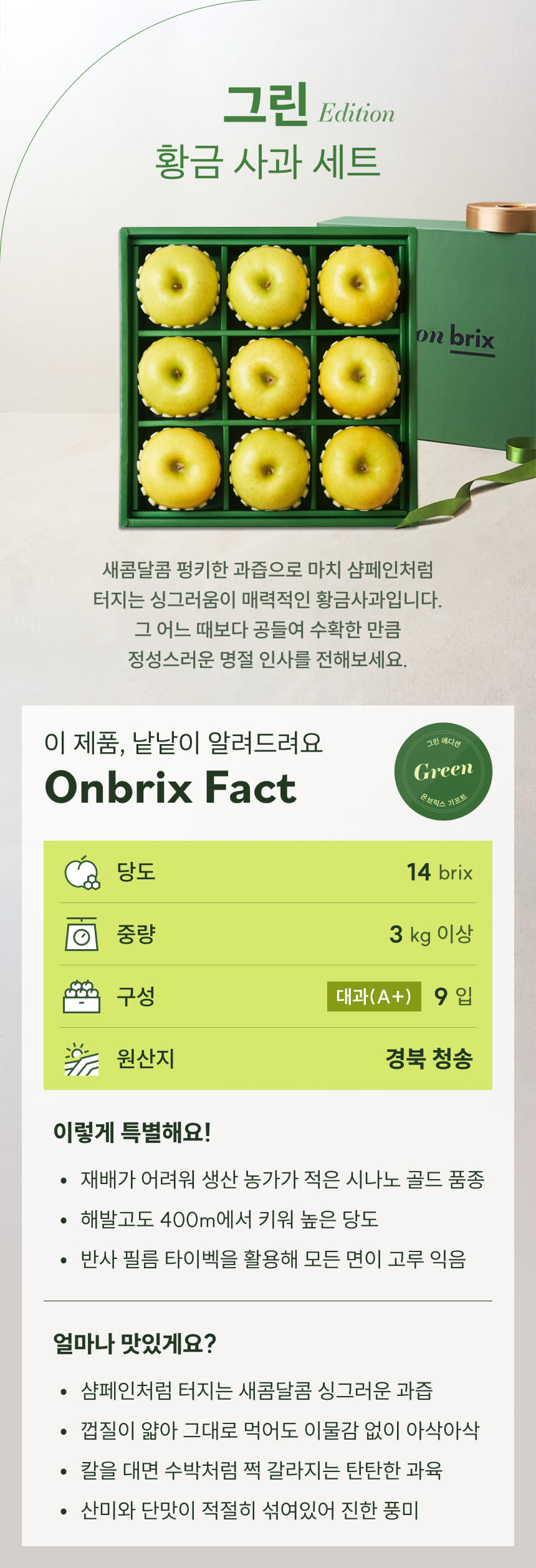 022 [설 선물] 그린 에디션, 프리미엄 황금사과 선물세트 3kg이상(9입/특품)