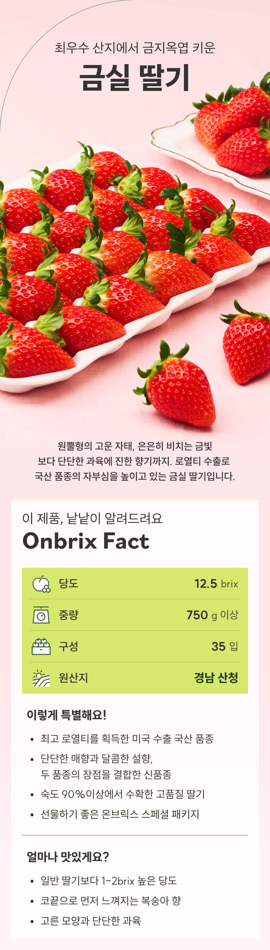 [아침 수확, 새벽 도착] 국내 최고급 품종, 고당도 산청 금실 딸기 750g (35입/특품)