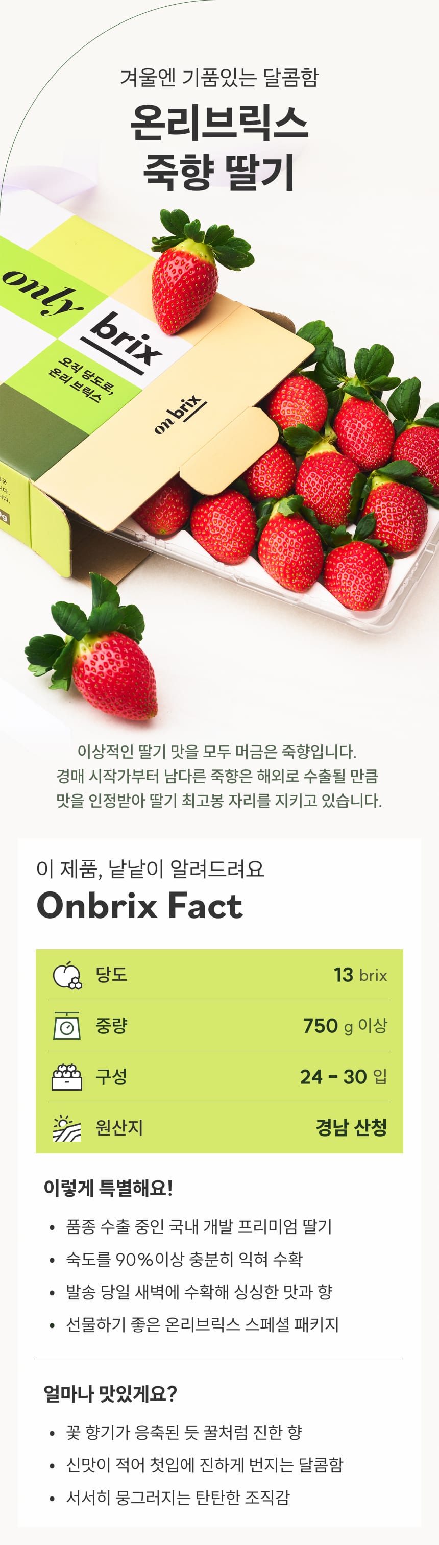 048 [설 선물] 국내 최고 등급, 온리브릭스 산청 죽향 딸기 750g(24-30입/특품)