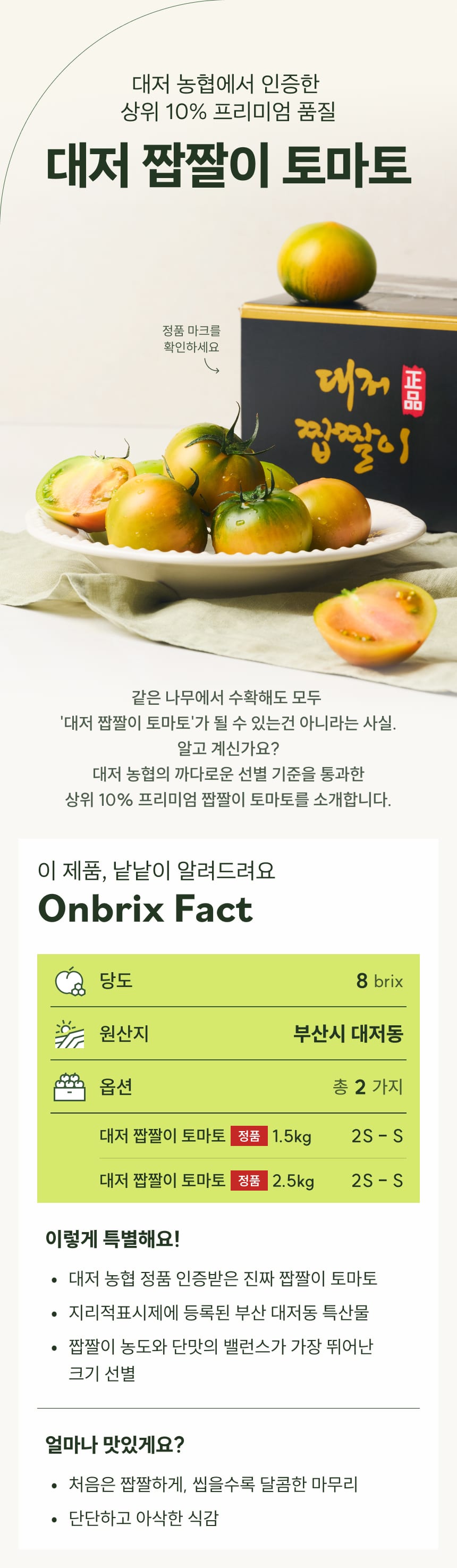 [새벽에On] 로열과만 선별한, 정품 대저 짭짤이 토마토 1.5kg / 2.5kg