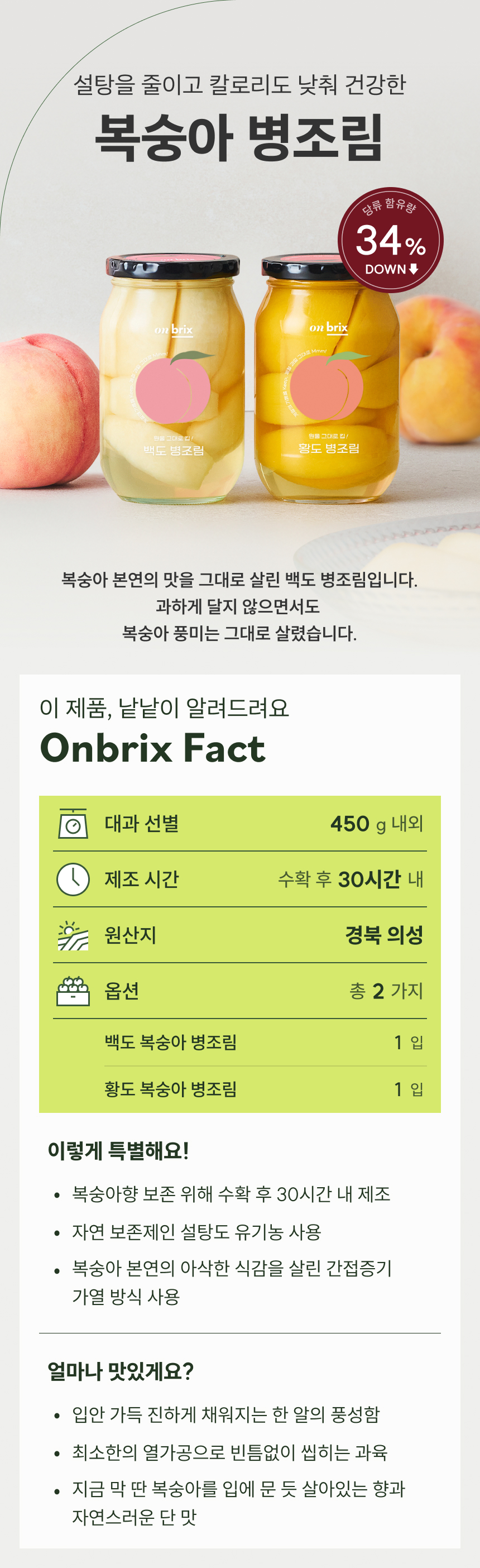 [새벽에On] 원물 그대로 킵! 저당 백도 황도 병조림 450g
