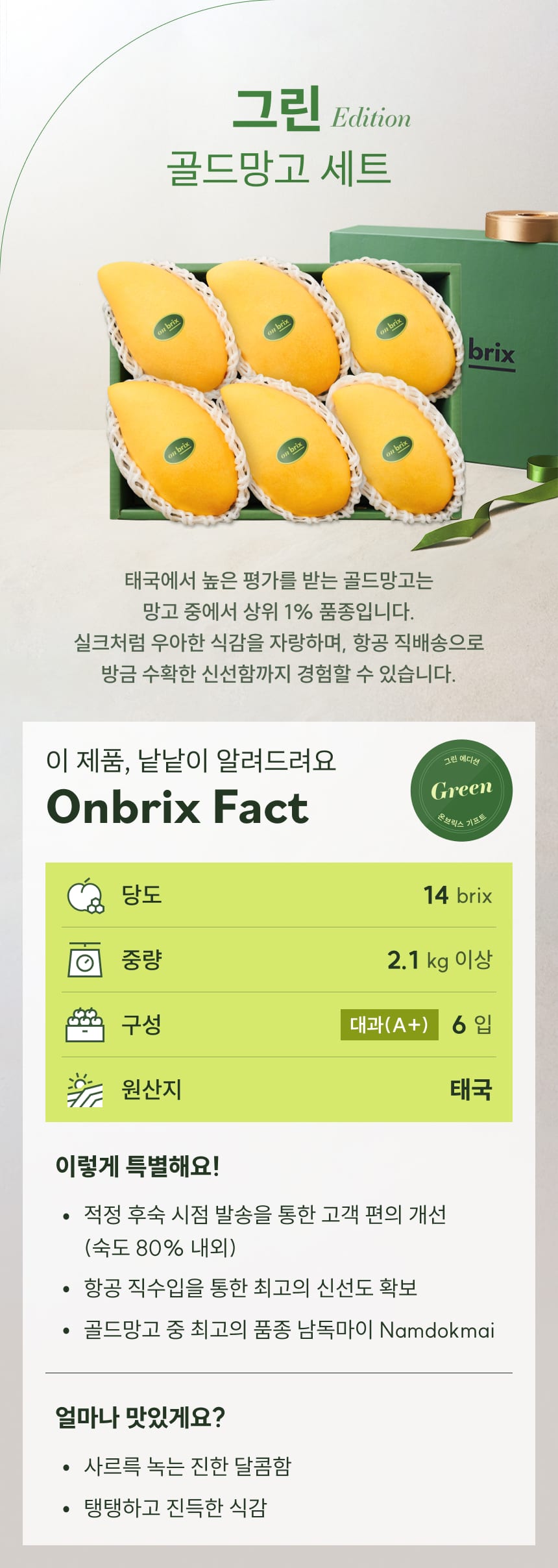 [새벽에On] 그린 에디션, 프리미엄 골드망고 선물세트 2.1kg이상(6입/특품)
