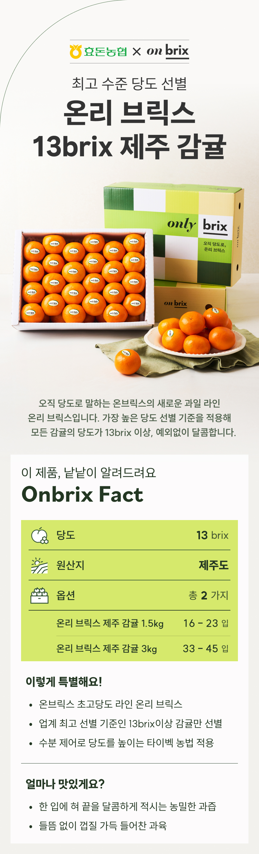[산지직송] 온리브릭스 효돈농협 고당도 감귤 선물세트 1.5kg / 3kg(13brix/특품)