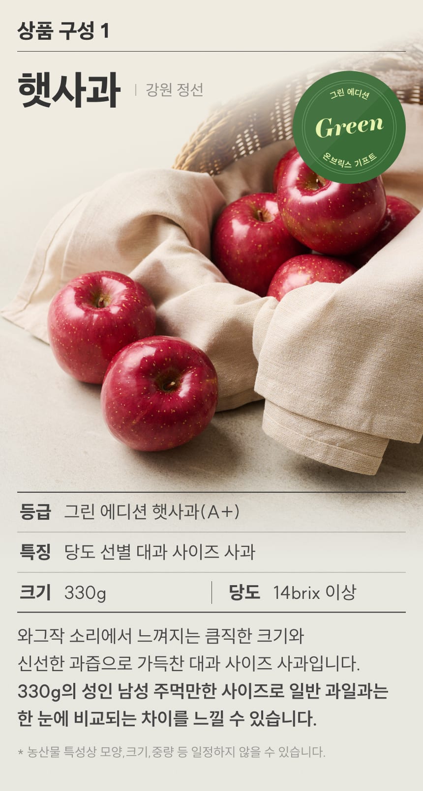 [새벽에On] 그린 에디션, 프리미엄 사과&배&애플망고 선물세트 3kg이상(6입/특품)