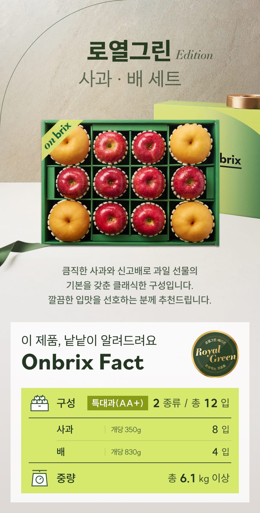009 [설 선물] 로열그린 에디션, 사과&배 선물세트 6.1kg이상(12입/특품)