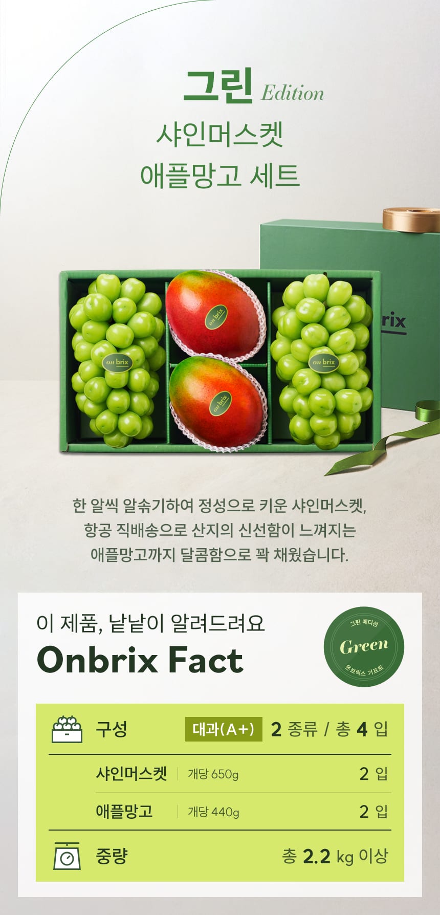 127 [설 선물] 그린 에디션, 애플망고&샤인머스켓 선물세트 2.2kg이상(4입/특품)