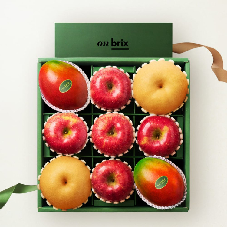 [새벽에On] 그린 에디션, 프리미엄 사과&배&애플망고 선물세트 4kg이상(9입/특품)