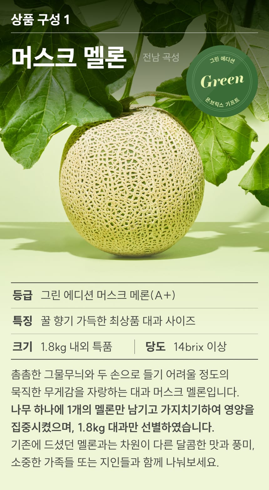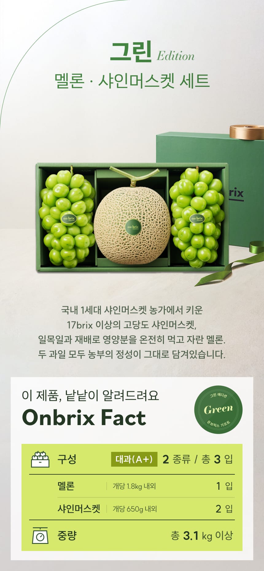 [산지직송] 그린 에디션, 샤인머스켓&머스크멜론 선물세트 3.1kg이상(3입/특품)