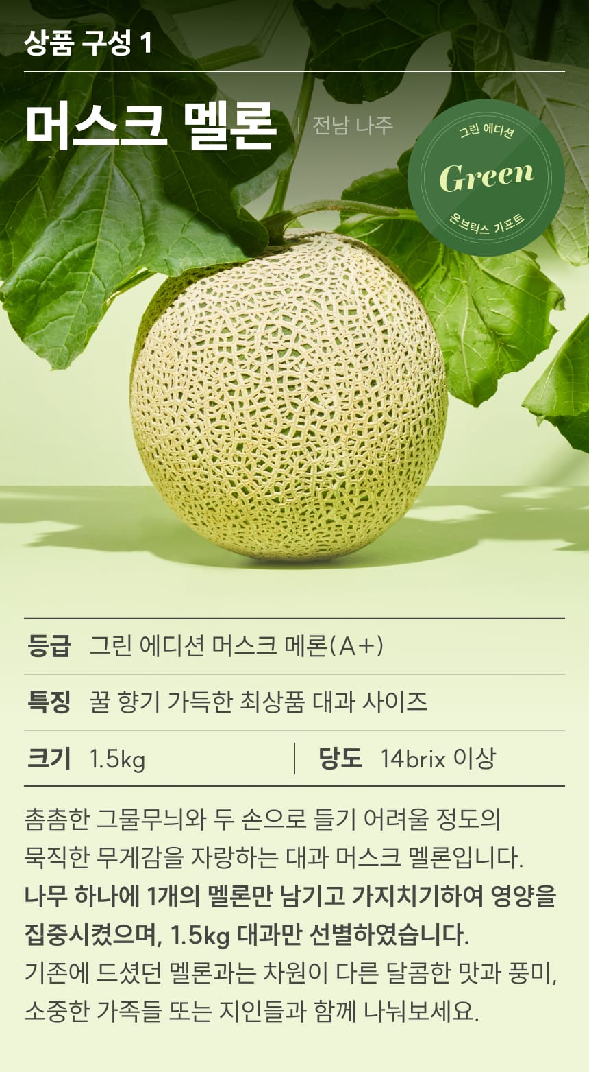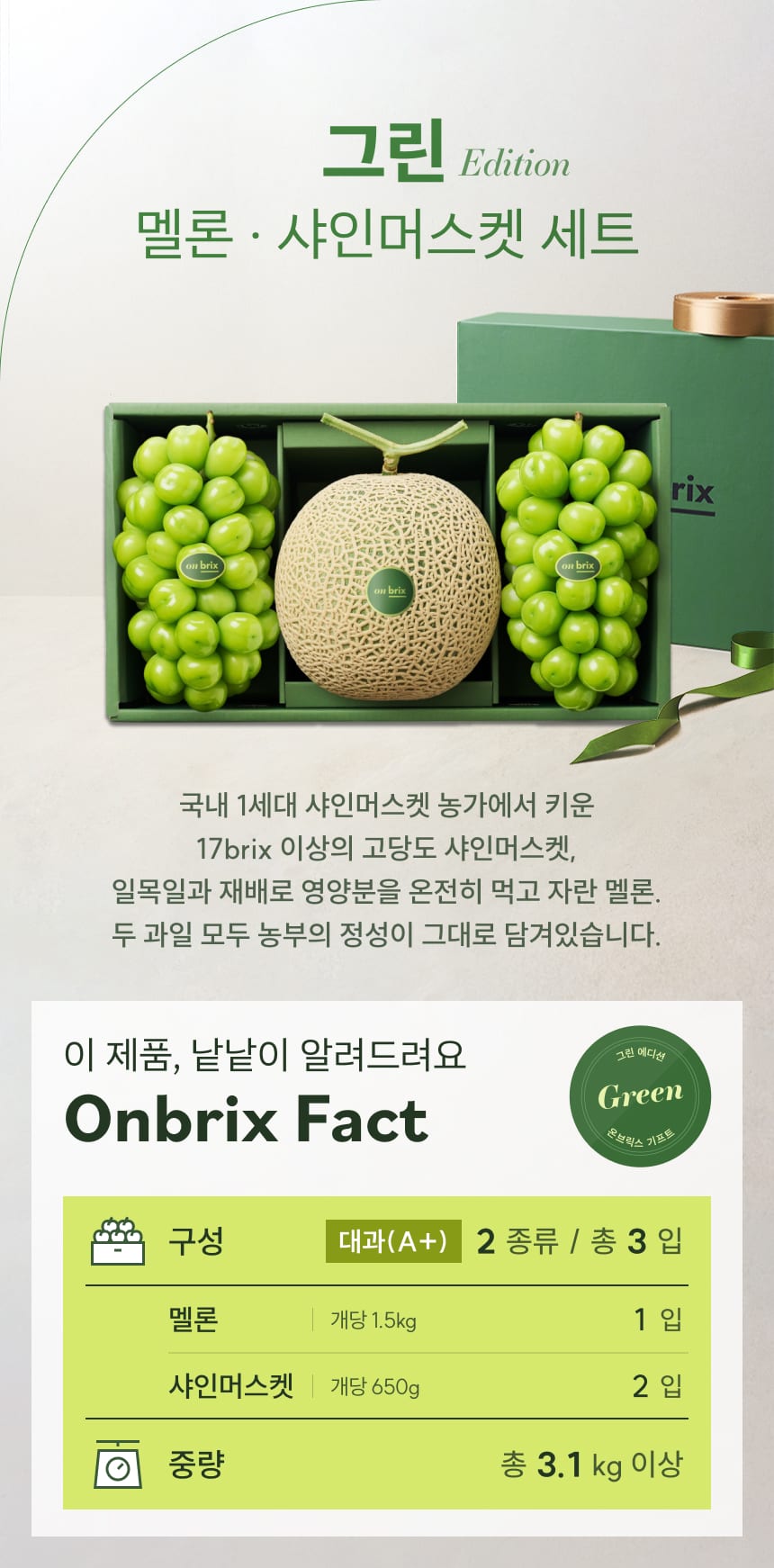 119 [설 선물] 그린 에디션, 샤인머스켓&머스크멜론 선물세트 3.1kg이상(3입/특품)