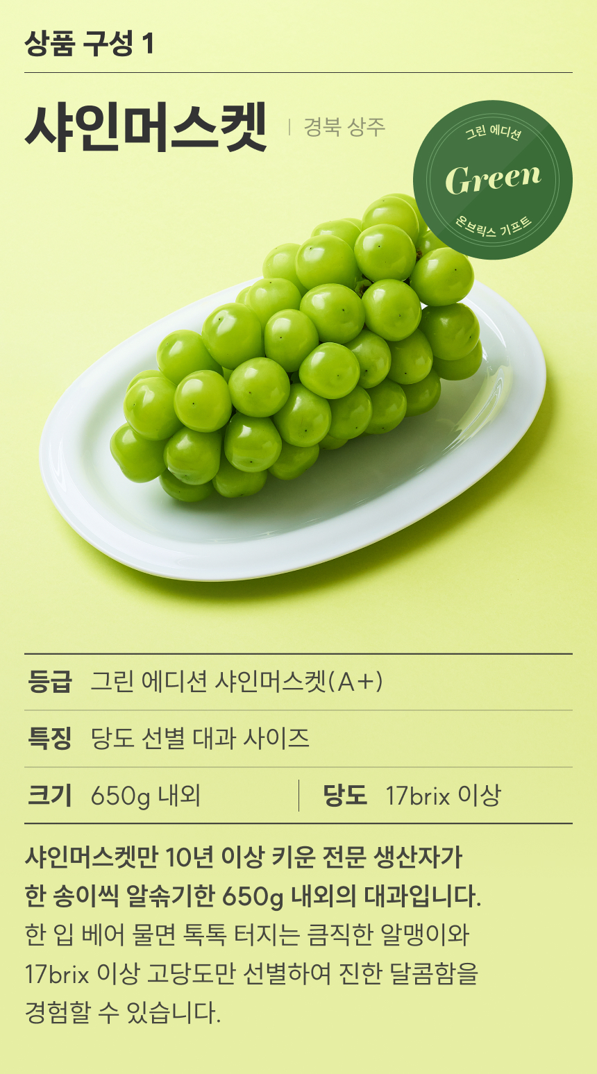 [새벽에On] 그린 에디션, 프리미엄 샤인머스켓&사과&배 선물세트 3.8kg이상(7입/특품)