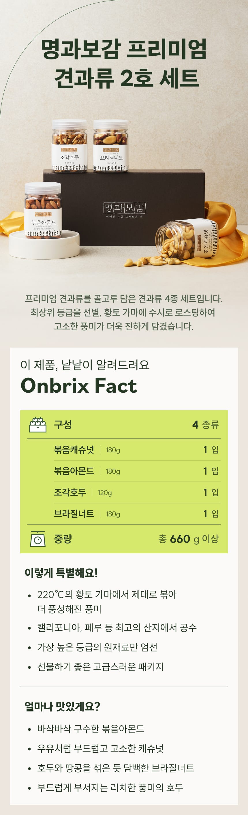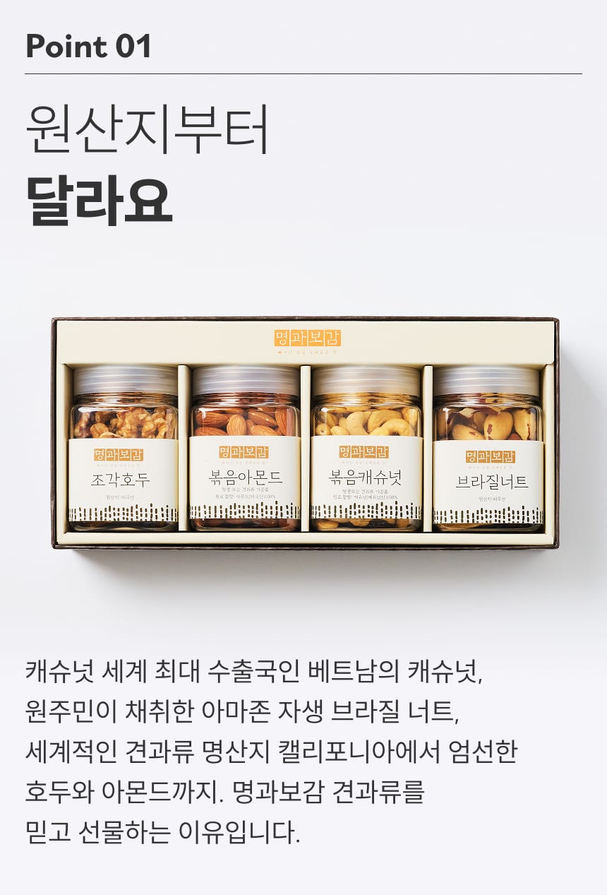 [산지직송] 프리미엄 견과류, 명과보감 2호 선물세트(캐슈넛,아몬드,호두,브라질넛)