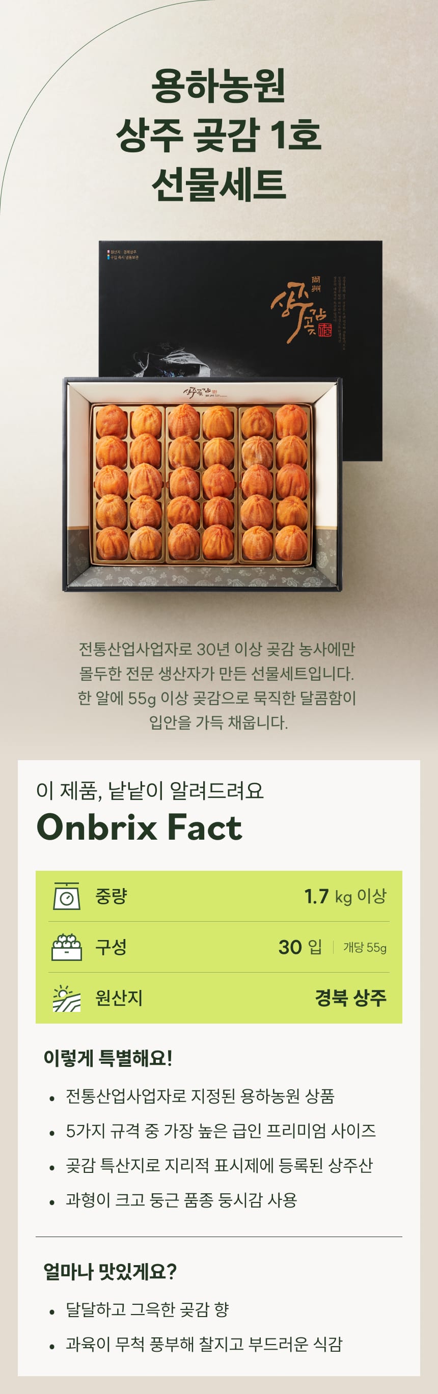 [산지직송] 30년 전통 상주 고품격 곶감 1호 선물세트 30입 (개 당55g이상/특품)
