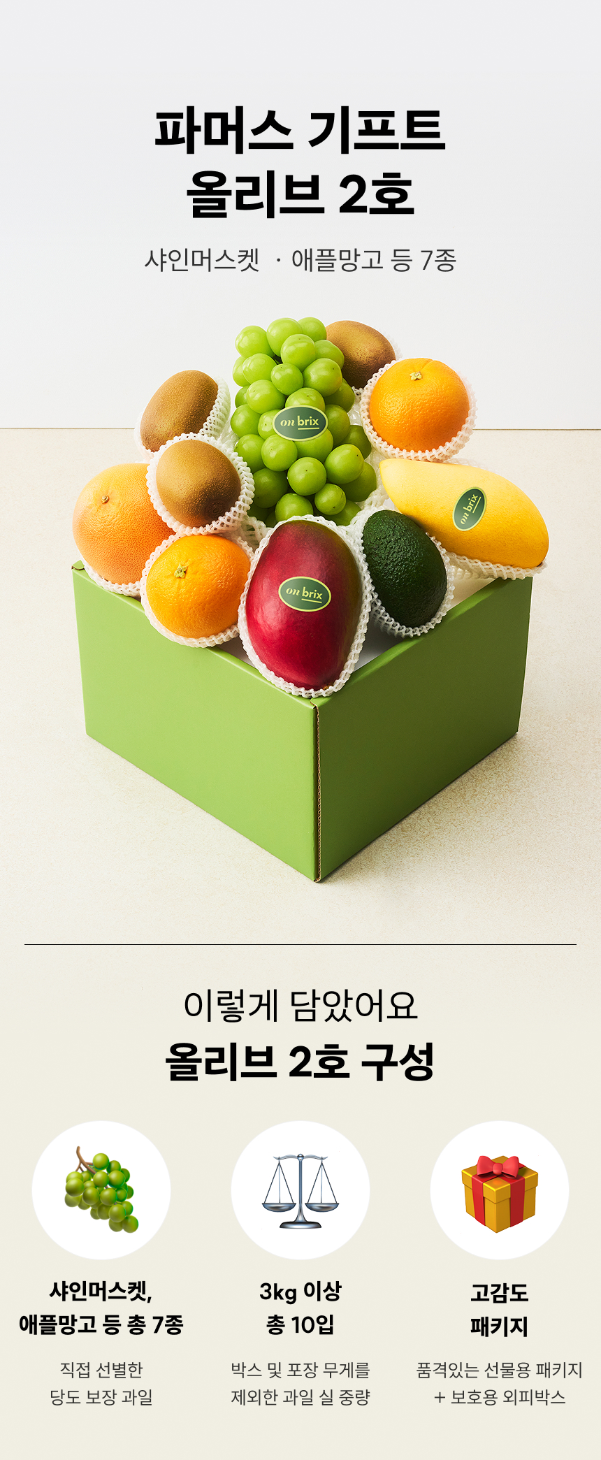 [새벽에On] 프리미엄 과일선물세트7종 올리브2호 (샤인머스켓,애플망고)3kg이상
