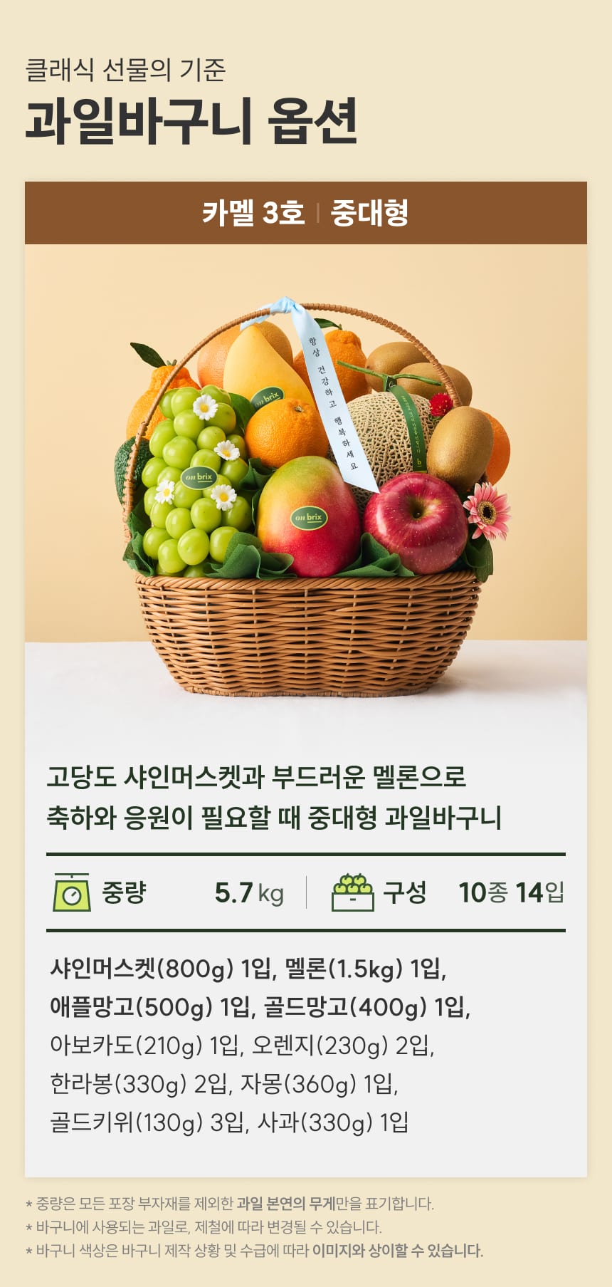 057 [설 선물] 과일바구니, 카멜3호 10종 5.7kg이상(샤인머스켓,멜론)