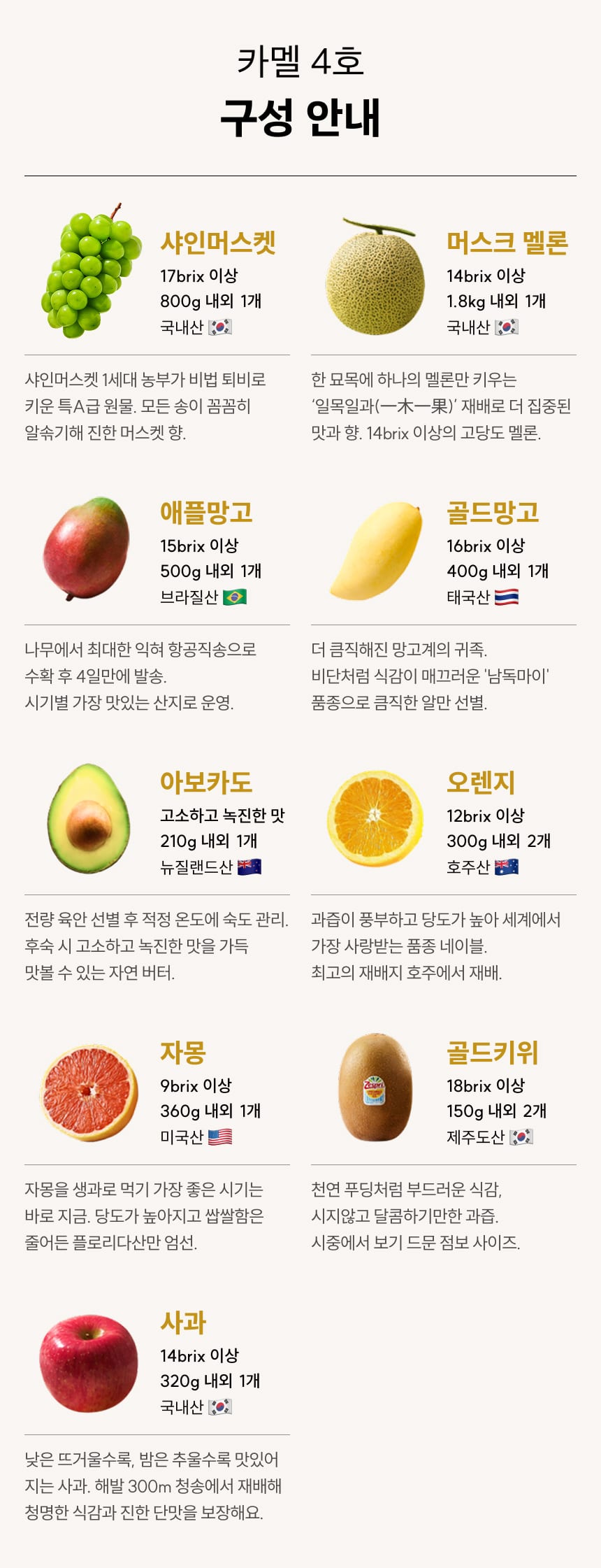 [오늘On] 과일바구니, 카멜4호 9종 5.3kg이상(샤인머스켓,멜론)