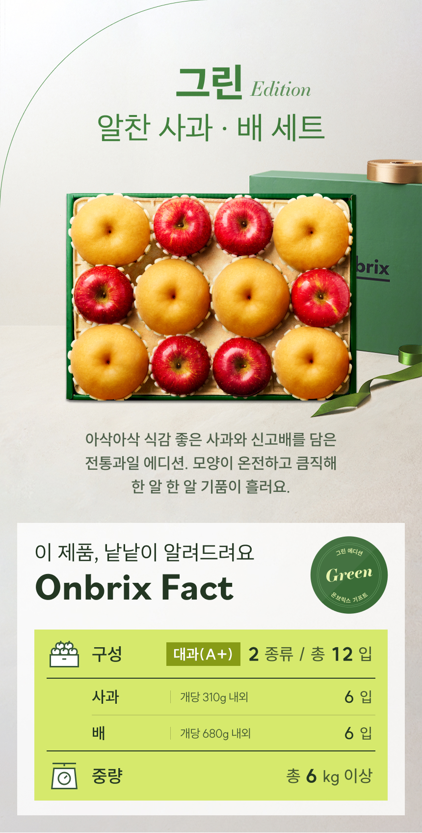 [산지직송] 그린 에디션, 알찬 사과&배 선물세트 6kg이상(12입/특품)
