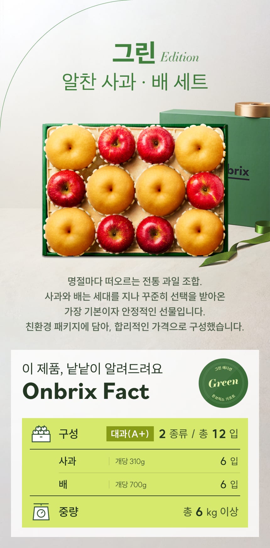 036 [설 선물] 그린 에디션, 알찬 사과&배 선물세트 6kg이상(12입/특품)