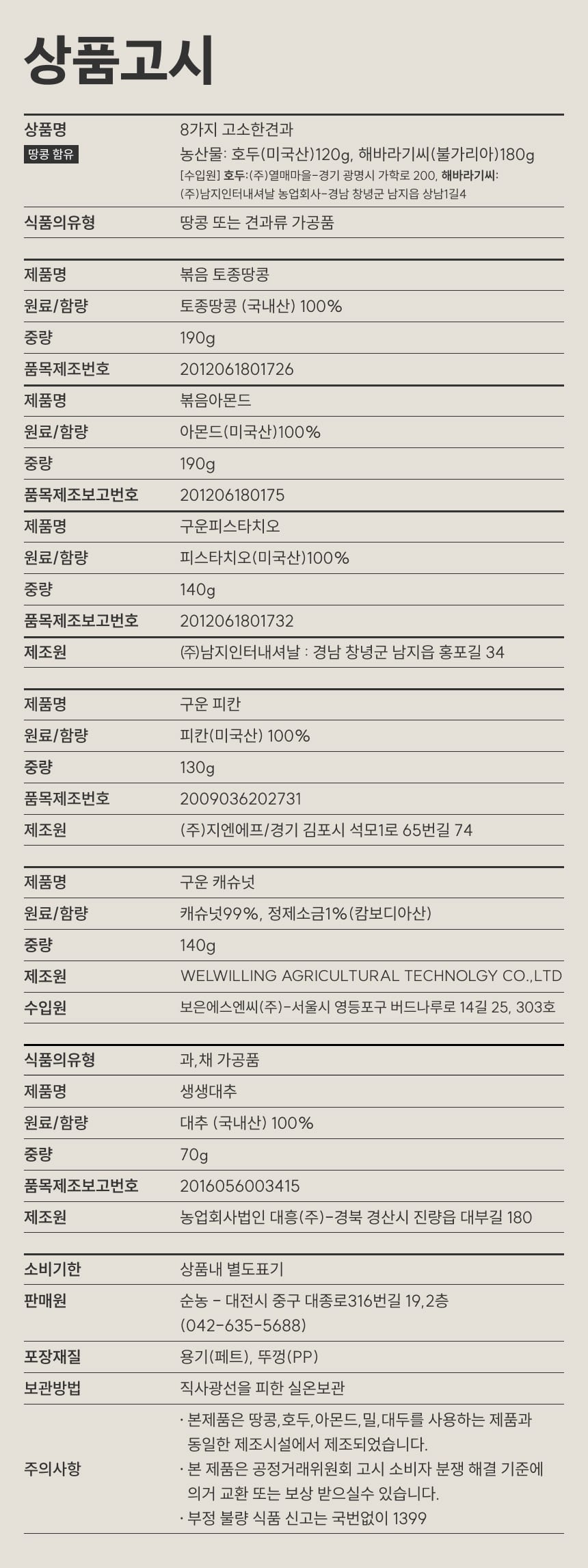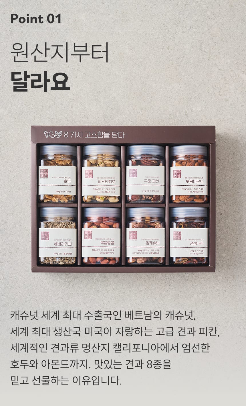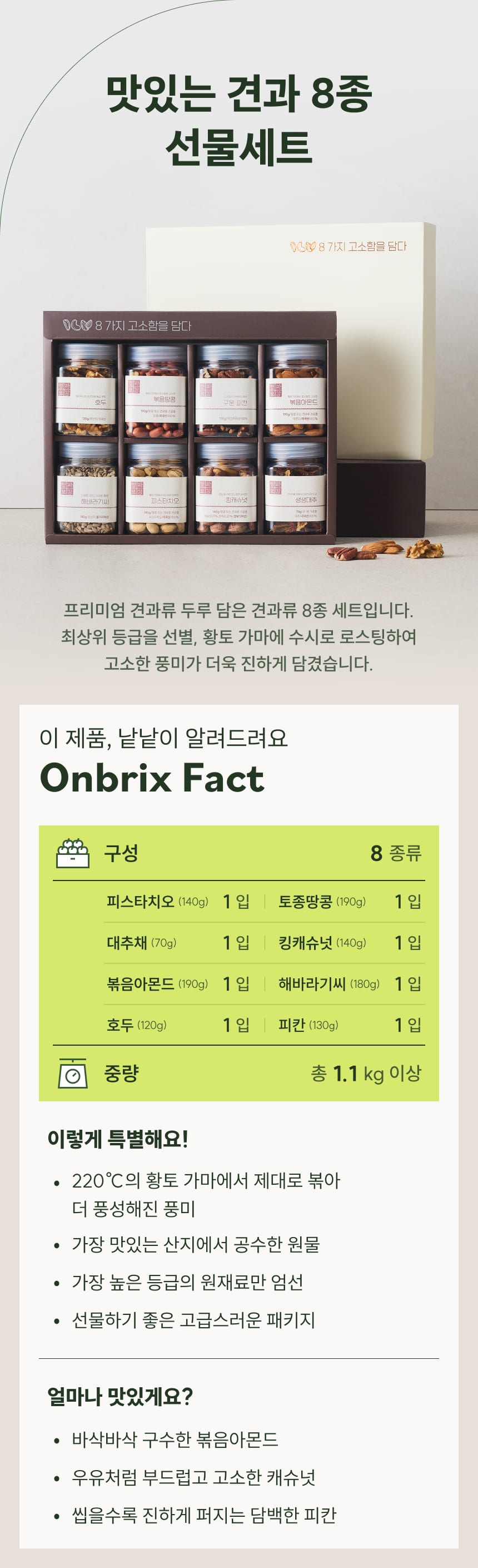 [산지직송] 프리미엄 견과류 8종 선물세트(캐슈넛,아몬드,땅콩,호두,피칸,피스타치오)