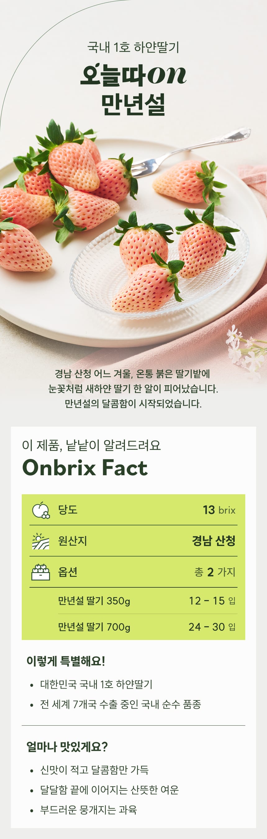[아침 수확, 새벽 도착] 국내 1호 하얀딸기, 만년설 딸기 350g / 700g이상(특품)