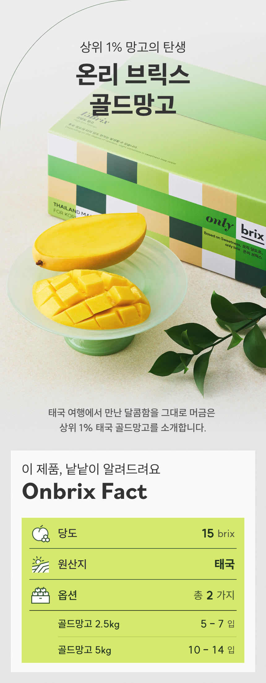 [새벽에On] 상위 1% 망고의 탄생, 온리브릭스 골드망고 2.5kg / 5kg(특품)