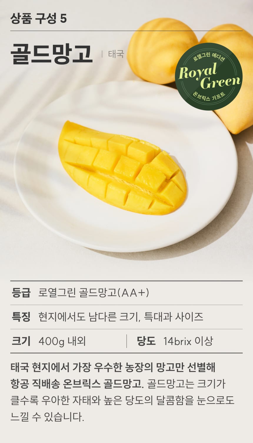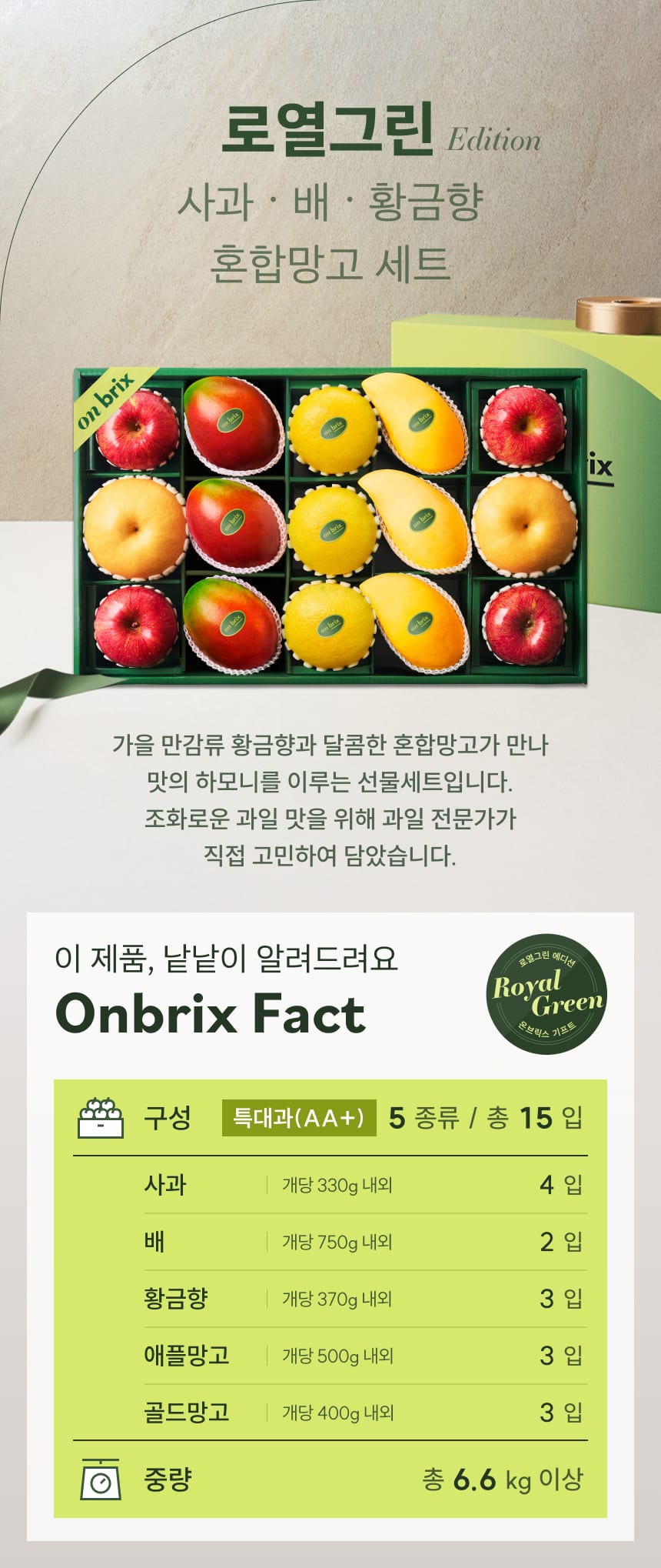 [새벽에On] 로열그린 에디션, 사과&배&황금향&혼합망고 선물세트 6.6kg이상(15입/특대형)