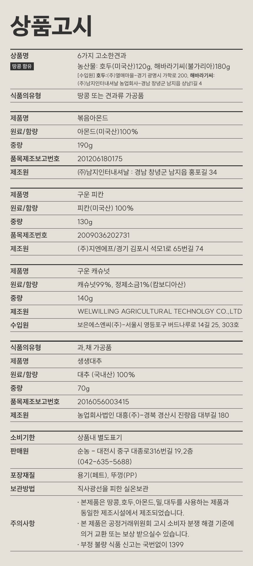 생산자 및 소재지 | 상세페이지 참조 |