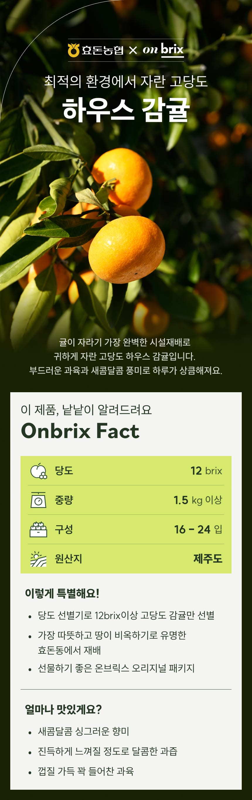 [산지직송] 효돈농협 제주감귤 에디션, 고당도 하우스 감귤 1.5kg이상(12brix/특품)