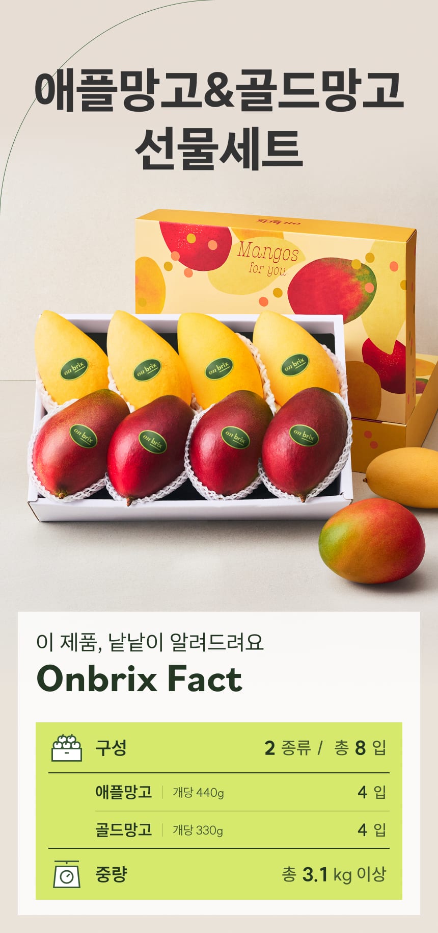 075 [설 선물] 항공직송 고당도 애플망고&태국망고 선물세트 3.1kg이상(8입/특품)