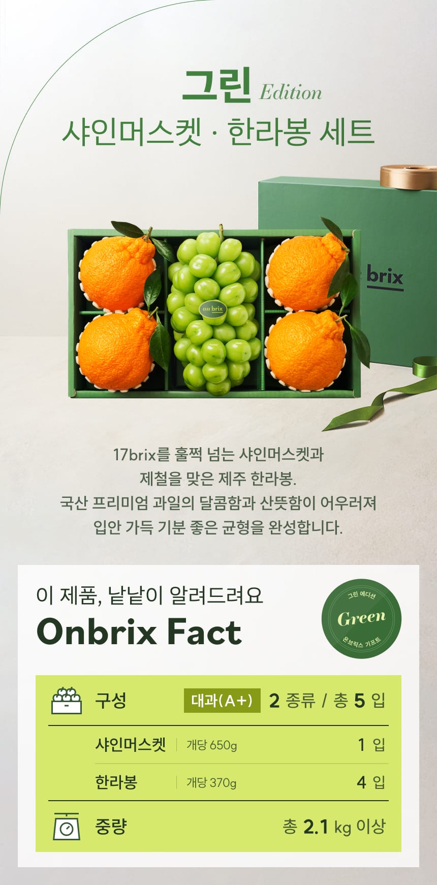 030 [설 선물] 그린 에디션, 프리미엄 샤인머스켓&한라봉 선물세트 2.1kg이상(5입)