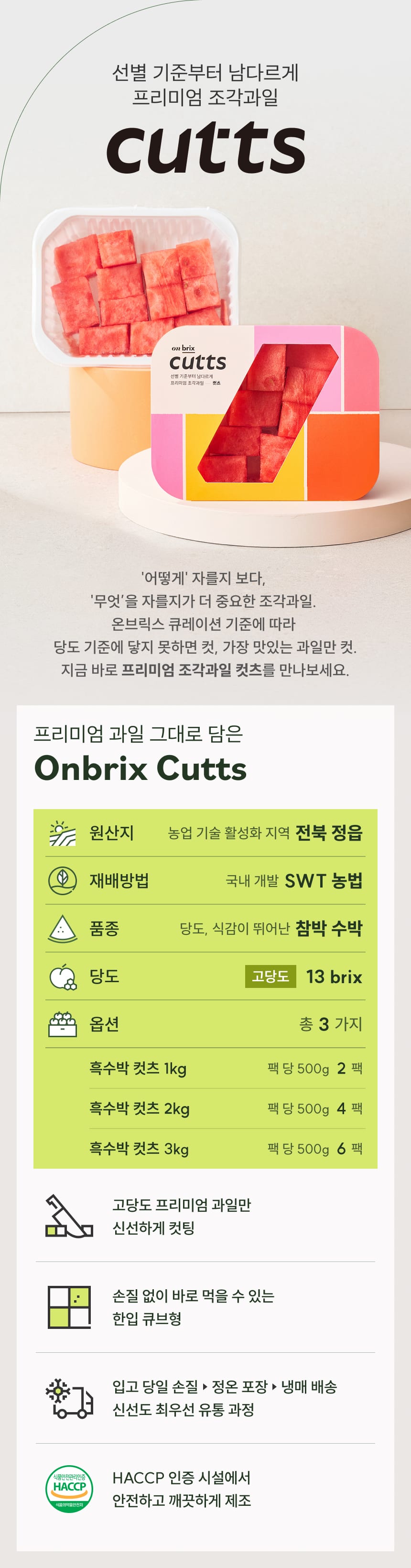 [새벽에On] 씨 없는 흑수박을 그대로 자른, 프리미엄 조각수박 1kg / 2kg / 3kg
