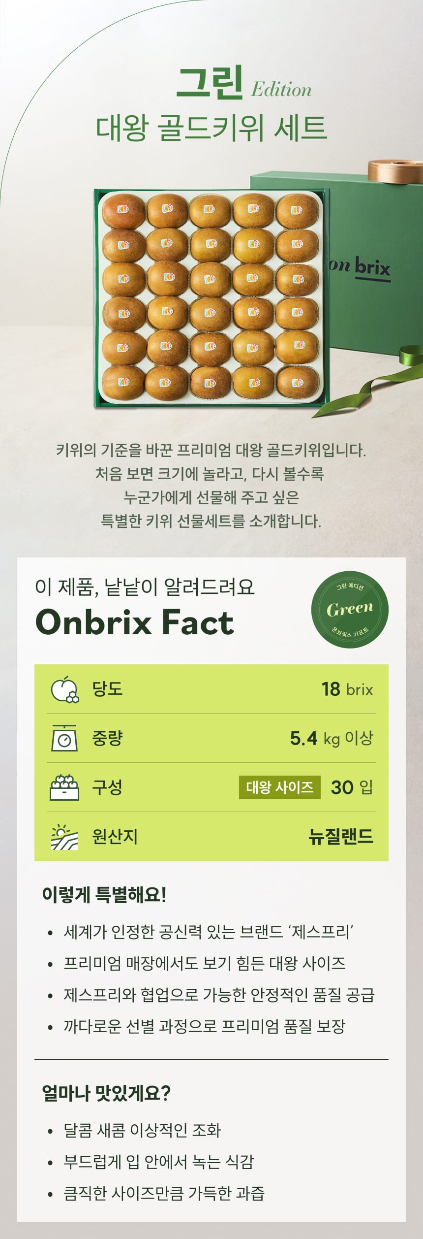 [산지직송] 그린 에디션, 프리미엄 대왕 골드키위 선물세트 5.4kg이상(30입/특품)