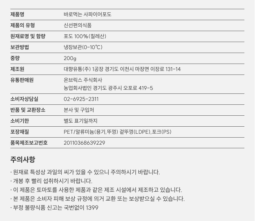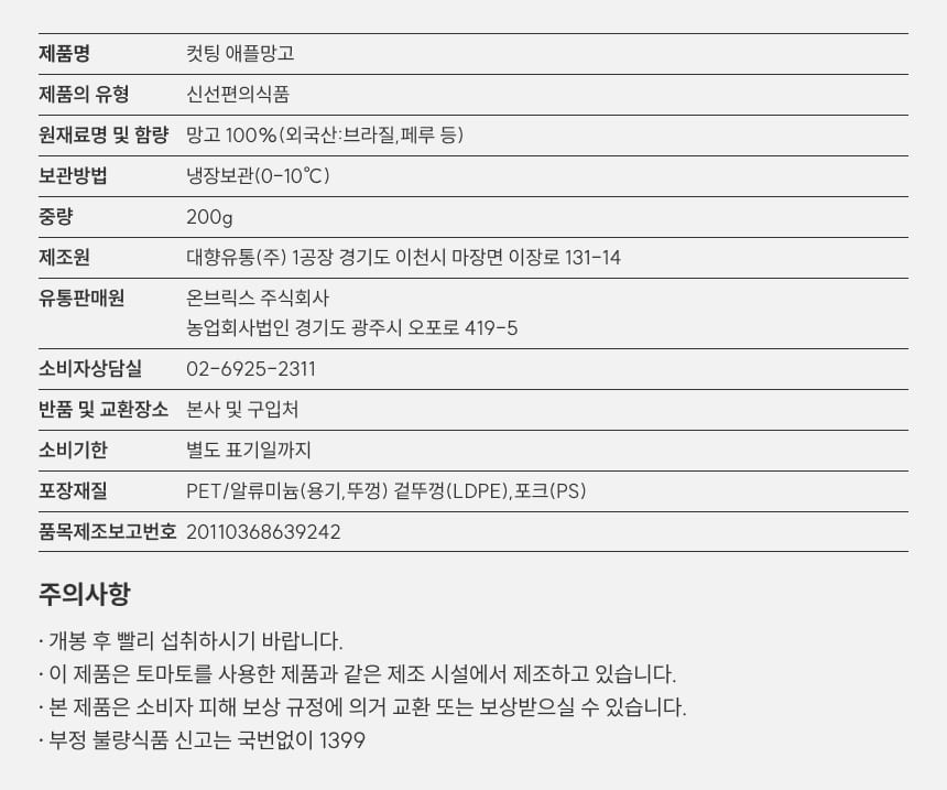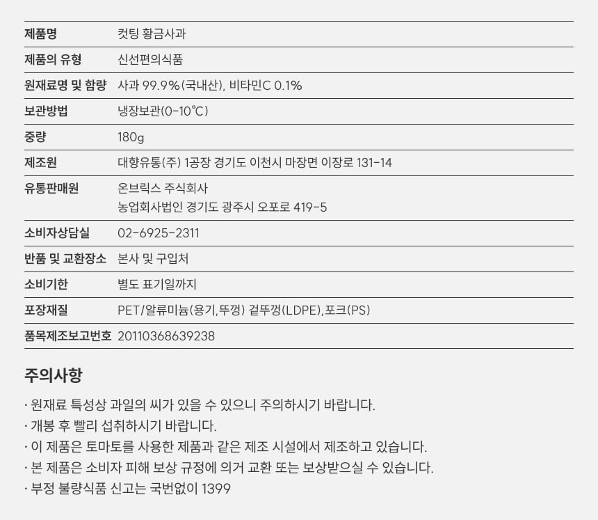 용량/수량 | 1.8kg(팩당 180g/200g 내외) |