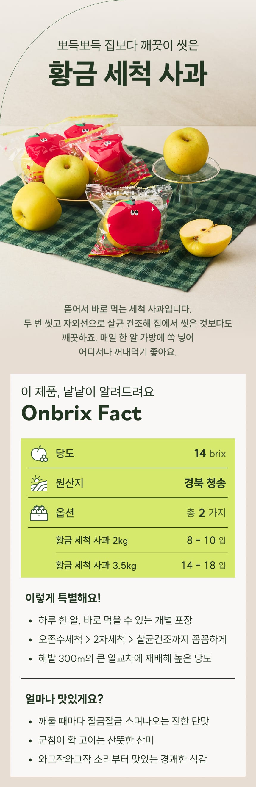 [새벽에On] 껍질째 먹는 황금 세척 사과 2kg / 3.5kg