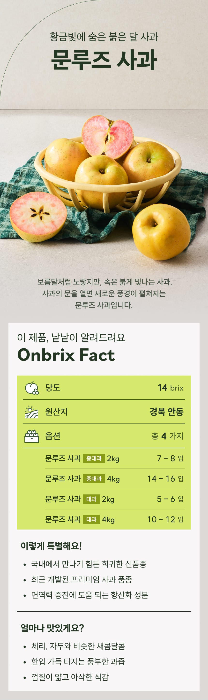 [새벽에On] 핑크빛 과육의 달콤함, 신품종 문루즈사과 2kg / 4kg (중대과/대과)