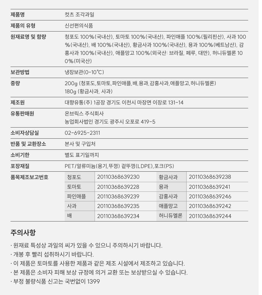 [새벽에On] 하루 한 컵, 바로먹는 조각과일 10종