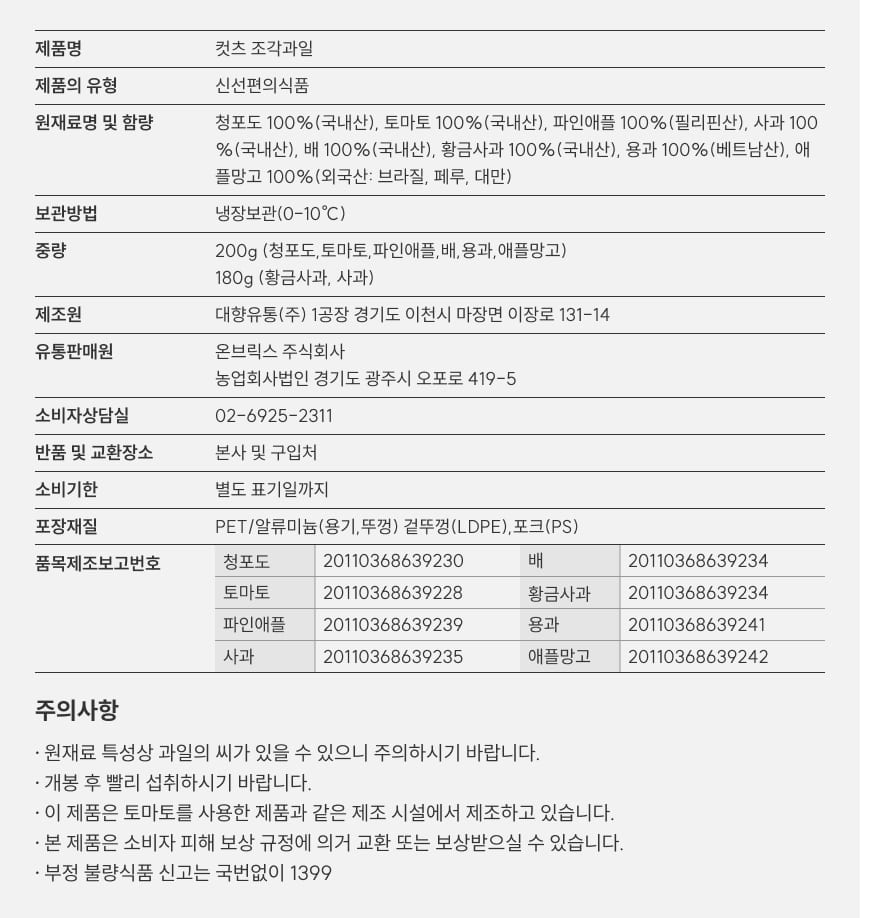 [새벽에On] 하루 한 컵, 바로먹는 조각과일 8종