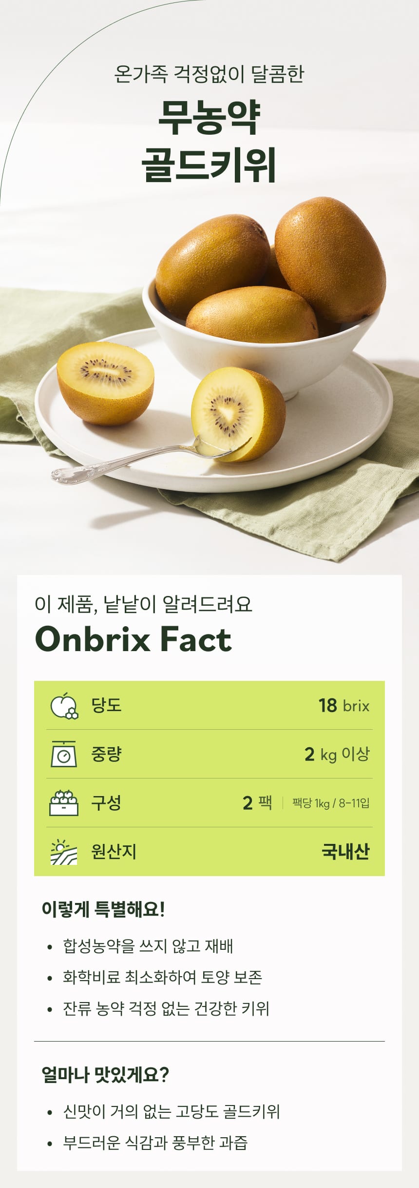 [새벽에On] 온가족 걱정없이 달콤한, 무농약 국내산 골드키위 2kg