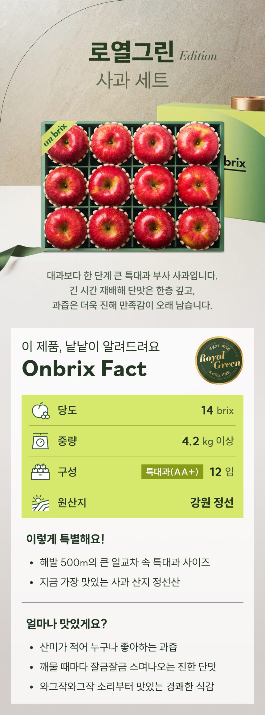 010 [설 선물] 로열그린 에디션, 사과 선물세트 4.2kg이상(12입/특품)