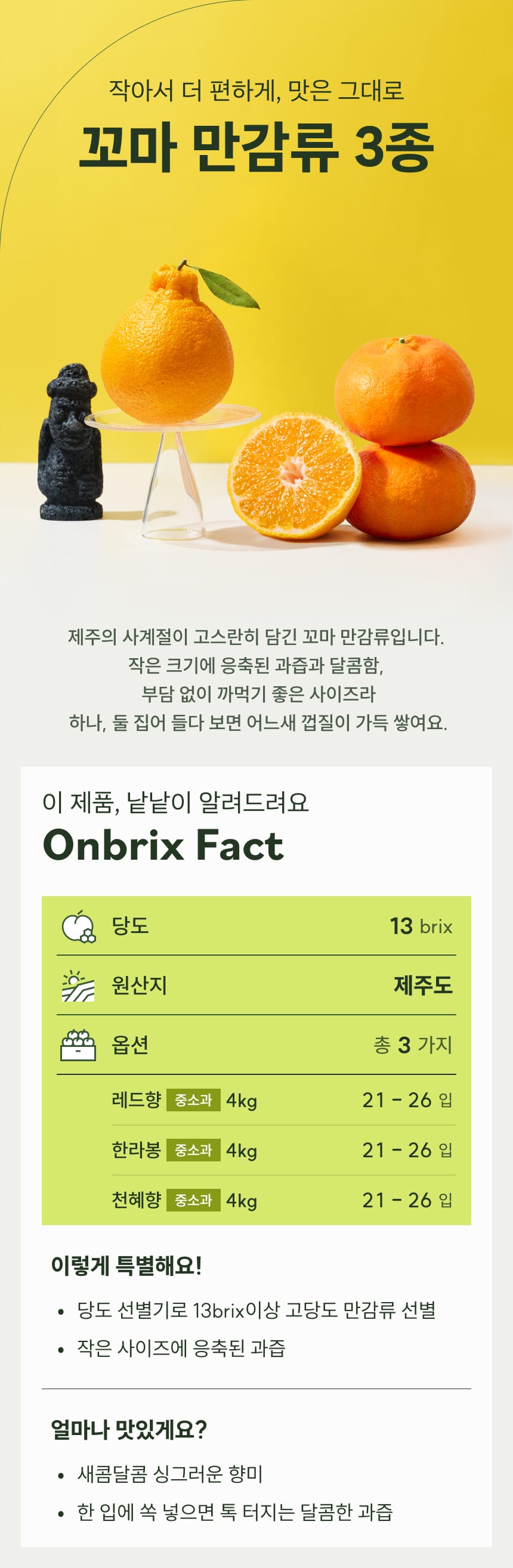 [산지직송] 작아서 더 맛있다! 제주 꼬마 만감류 3종 4kg이상 (레드향,한라봉,천혜향/13brix)
