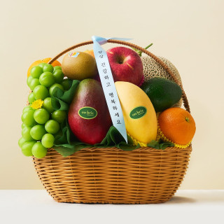 [오늘On] 과일바구니, 베이지1호 7종 3.2kg이상(샤인머스켓,혼합망고)